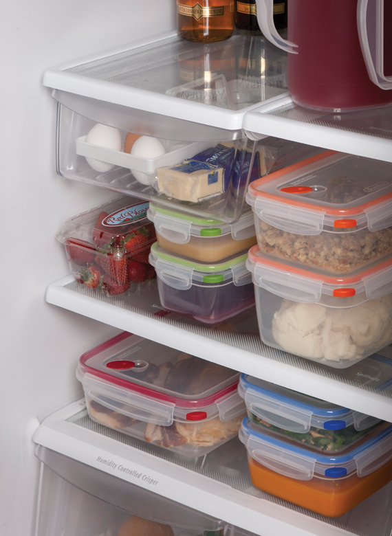 I started by checking the use-by date on all my canned goods and condiments and tossed anything that exceeded the use-by date. (Here’s a tip: If you are getting rid of any canned vegetables or fruit and you don’t want to waste anything, put the cans’ contents and some water in a blender and use as a fertilizer for your garden or house plants.) Next, I started grouping the remaining items – soups, condiments, breads, bottles of juice, and snacks. This allowed me to see what I was working with and determine where I wanted everything to go.